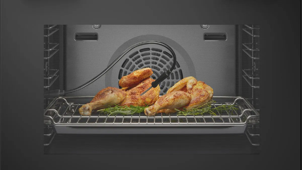 偵測中心溫度 自動烤得恰到好處還在擔心食物跟你裝熟嗎? 業界唯一3點食物探針,能更精確判斷食材中心溫度,插入探針後,只要設定所需核心溫度,烤物即可輕鬆上桌,不費吹灰之力展現專業大廚身手。