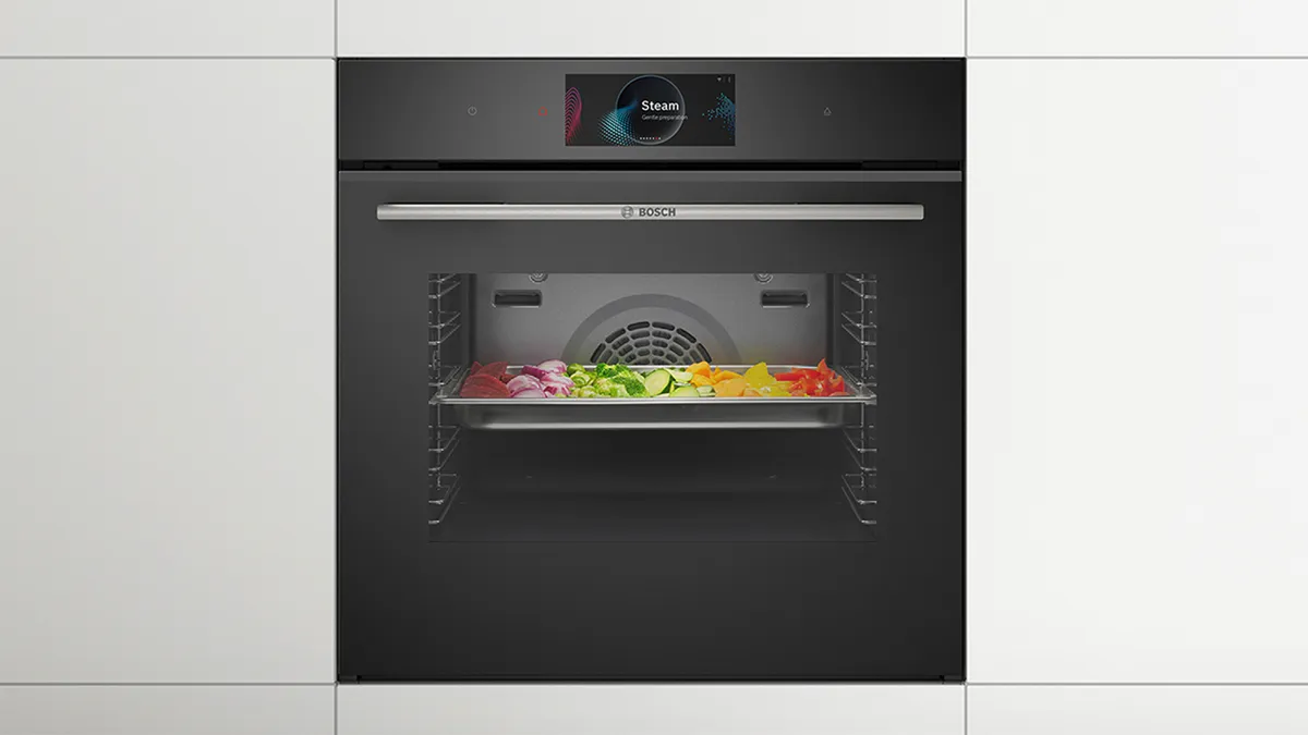 全新升級的 BOSCH 8系列極緻黑智慧蒸烤爐 HSG7584B1,滿足您各式烹飪需求,從中式料理、西餐、烘焙到甜點,全都一手包辦。全面升級的烘烤及蒸煮科技以及結合AI人工智慧的 Home Connect 物聯提供您更進階的協助,讓 BOSCH 蒸烤爐為您的料理找到最合適的設定,完美呈現。