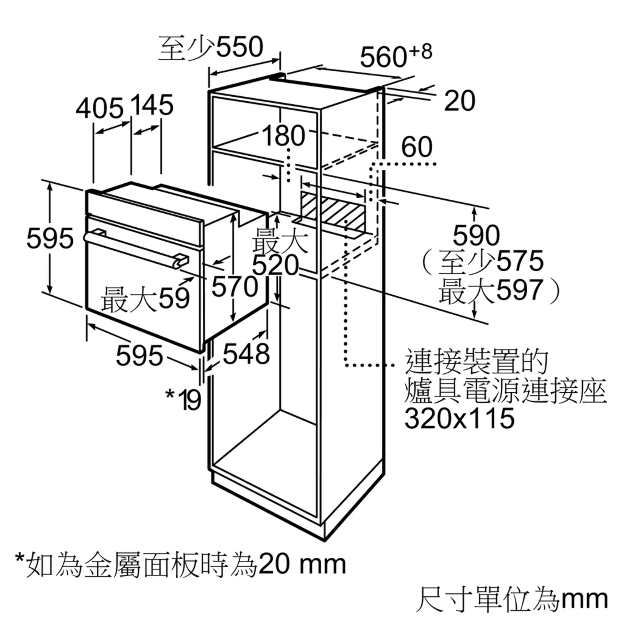 595 x 595 x 548 mm